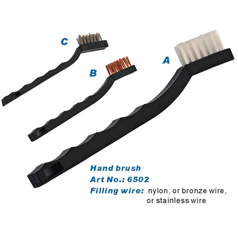 Мылтық тазалау утилитасы Қолдың қолы ауыр қылшықтар. Тіс щеткасы, пішінді, пластик тұтқасы, жез сымдар және таңдау үшін нейлон сымдары.