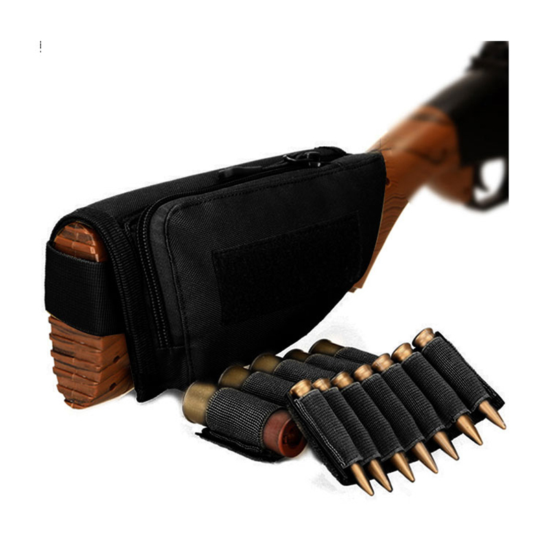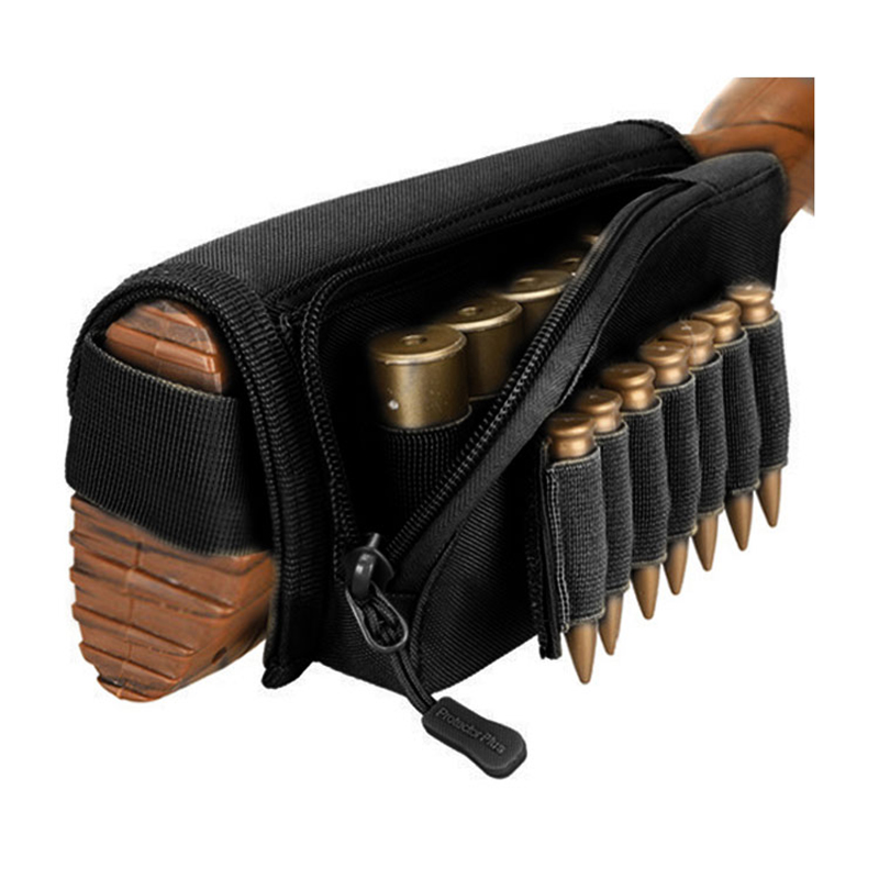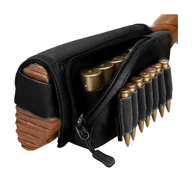 Бетстокты щек2MAGI жапсырмасы Қосылған AMMO серпімді топтары, 5 слоттары бар ұстағыш Zepered Utility дорбасының ішіндегі мылтық қабығына арналған, 7 слоттағы ұстағыш сыртта мылтыққа арналған. Бір мылтықпен (5 раунд) және бір мылтық (7 раунд) алмастырылатын қабық / картридж ұстағышпен бірге келеді.