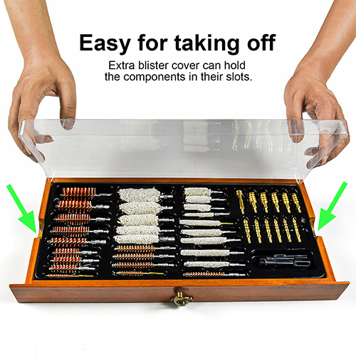 Мылтық тірегі бар люкс ағаш қораптағы әмбебап мылтық тазалау жинағы