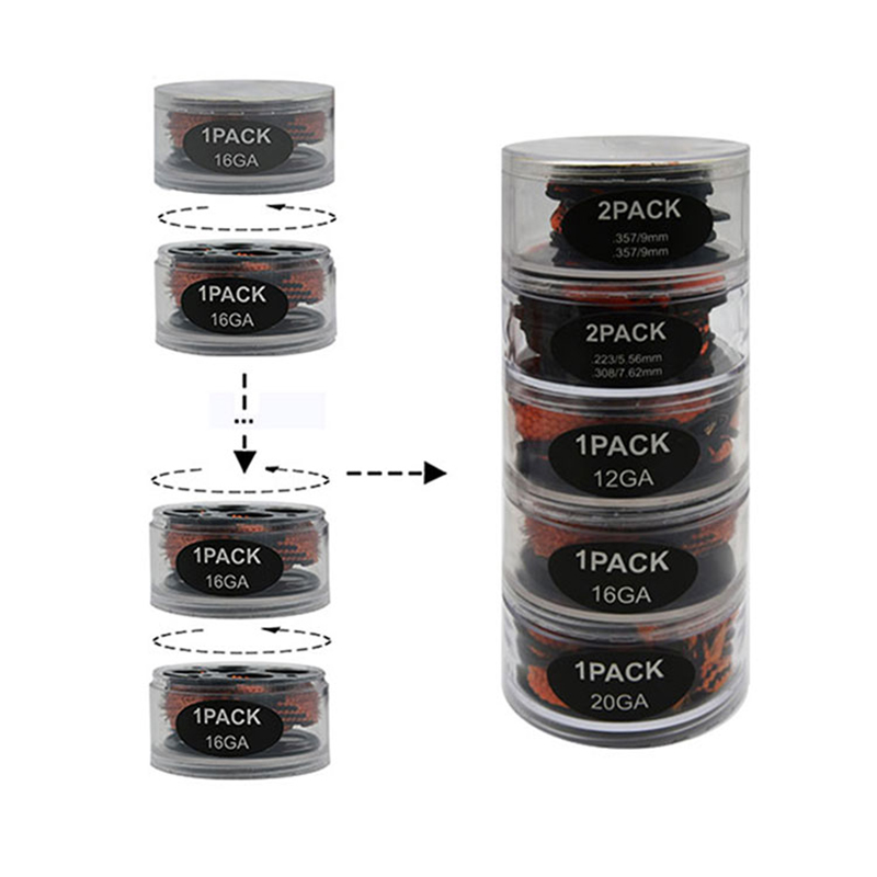 Мылтық тазалау Bore Snake Snake Multillayer Pack.diy.caliberers және мөлшерді үйлестіру Мылтық тазартқышы Боре жарқырайды Ол сақтау және жинау үшін ыңғайлы. Ішкі ядроны арқан орамалы ядро сияқты ғана емес, сонымен қатар тарту тұтқасы ретінде де қолдануға болады. Мұндай цилиндрлік пакет бір пакеттен гөрі оңайырақ. Дизайн - Ротчи патенттелген.