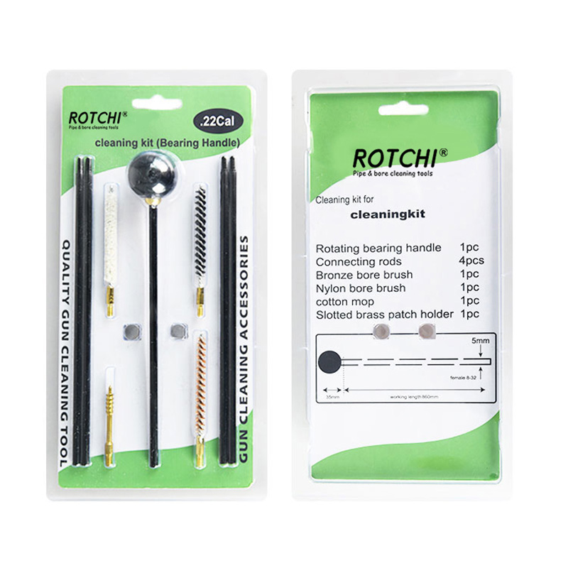 Жез жаңғақ қосылған ауырлық щеткалары мен керек-жарақтары. Калибрлі нөмір әр щетка гайкасына басылған. Қол жетімді өлшемдер: .177cal. / 4,5 мм ,.223cal. / 4,5 мм ,.243 / .25cal. / 65мм ,.25мм ,.270cal ,.270cal. / 7мм, 7мм,308Cal./7.62MM ,.338cal.8.5mm. Тұтынушы өлшемдері қолайлы.