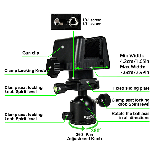Oem cnc алюминийі 360 градус допты допты ату ер-тоқым Аң аулауға арналған қысқыш Монопод Трипод