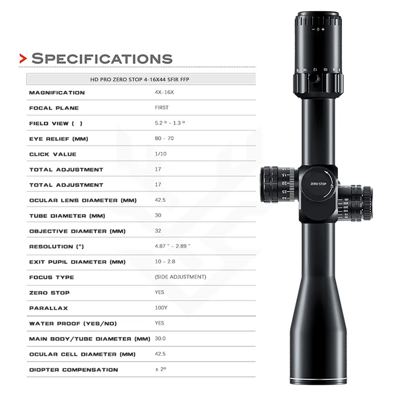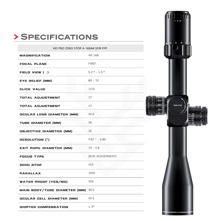 Optics HD Pro STOP 4-16х44 SFIR FFP жоғары соққыға қарсы аулау