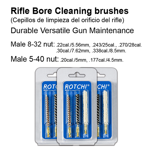 Мылтық саңылауын тазалау щеткасы 3-і 1 жиынтығы, блистер және карта пакеті. Қолжетімді өлшемдер: .177, .22, .25, .27, .30, 338 кал.