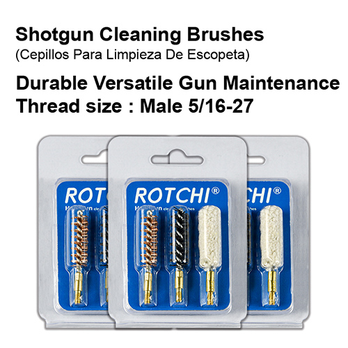 Мылтық саңылауын тазалау щеткасы 3-і 1 жиынтығы, блистер және карта пакет. Қолжетімді өлшемдер: 12G, 16G, 20G, 410