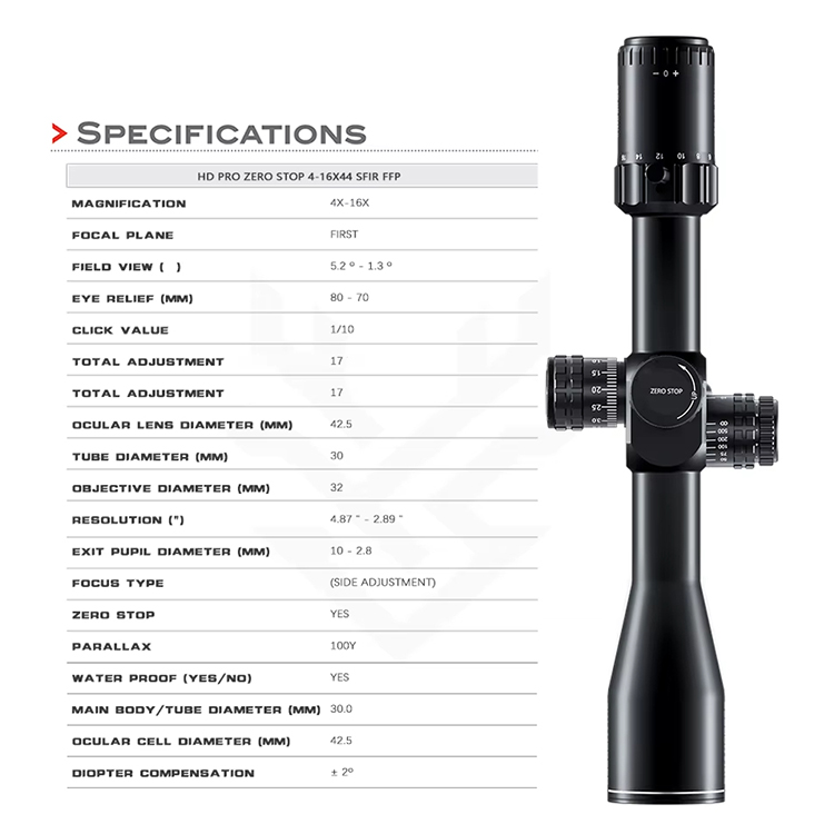 Нөлдік тоқтату 4-16х44 SFIR FFP-A 30 мм-ден 30 мм, диаметрі HD жарық-тартқыш ноль